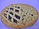 От омекналото масло, захарта, брашното, яйцето и лимоновата кора се замесва тесто. 2/3 от тестото се разточва на кора и се поставя в тортена форма с подвижно дъно. Притискат се крайщата и се поръсва с галетата. Почистените сини сливи се нарязват на 2 или 4 парчета и се нареждат върху тестото. Поръсват се със захарта. От останалата 1/3 част от тестото се оформят пръчици и се нареждат върху сливите като решетка. Сладкишът се пече в умерена фурна. Като изстине се поръсва с пудрата захар.