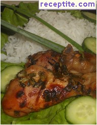 Направих го, ммм, жестоко, много вкусно! Добавих и кетчуп при соса. С праз лук го правих. И джинджифил - леко пикантно стана, ммм, а соевият ми сос беше сладък соев сос, прекрасно! благодаря за чудната рецепта! и мнооого лесна :)