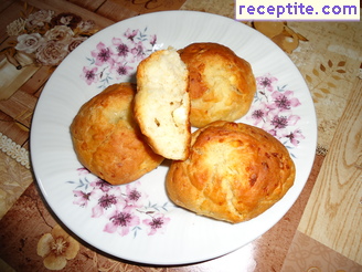 В дълбока купа се смесват всички продукти и се забърква много гъста каша. С лъжица се взема от кашата, колкото яйце, и се поставя в намазнена тава. Върху всяка топка се поставя в средата по малко маргарин и се пече в предварително загрята фурна.