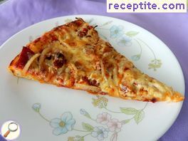 Аз приготвям тестото по тази рецепта - Тесто за пица - бързо и използвам една доза за тава с диаметър 33 см, като и зададените продукти са за този размер тава. За по-тънка пица дозата може да се намали до 3/4 или половина. Може да се използва и друго тесто за пица, дебелината е по избор.