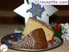 Яйцата се разбиват със захарта. Добавят се разтопеното масло, брашното, смесено с бакпулвера, изварата и нарязаните бадеми. Разбърква се и се изсипва във форма, покрита с хартия за печене или намазнена. Пече се около 25 минути, на 180С. Изважда се от формата и след като изстине, се поръсва с пудра захар.
