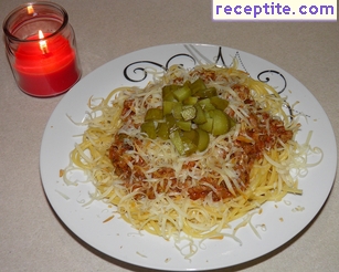 Спагети с кайма и кисели краставички