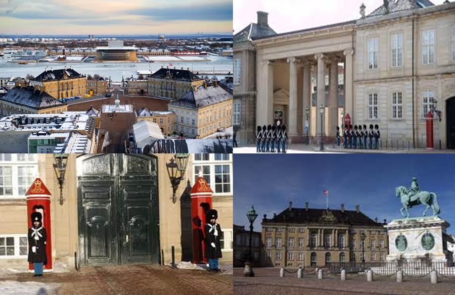 След кратка разходка човек се озовава на Amalienborg Plads. Това е обширен площад, заобиколен от резиденцията на датското кралско семейство. Амалиенборг( Amalienborg) представлява комплекс който се състои от четири почти еднакви дворци, оформящи осмоъгълник в средата на който се намира конната статуя на Фредерик 5.