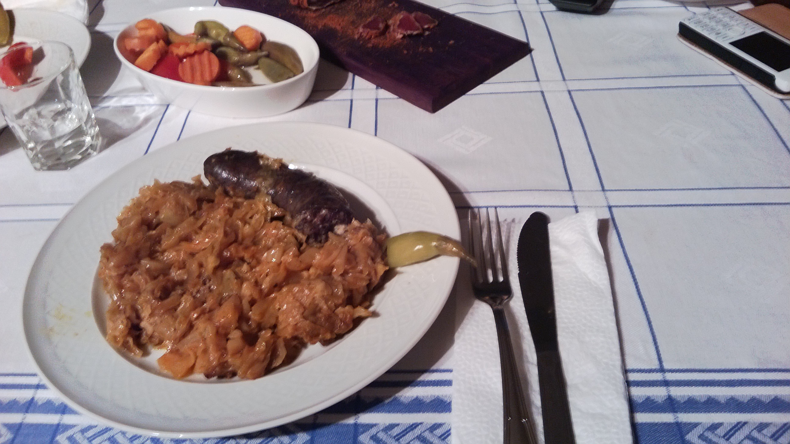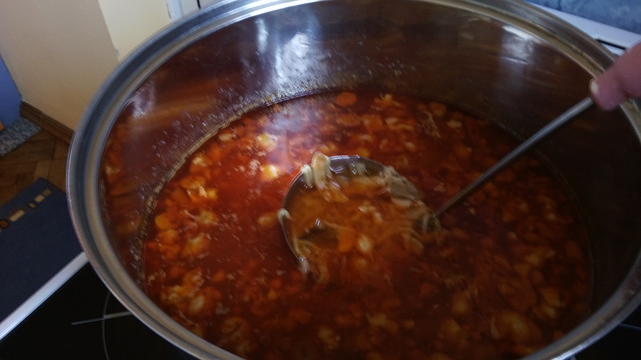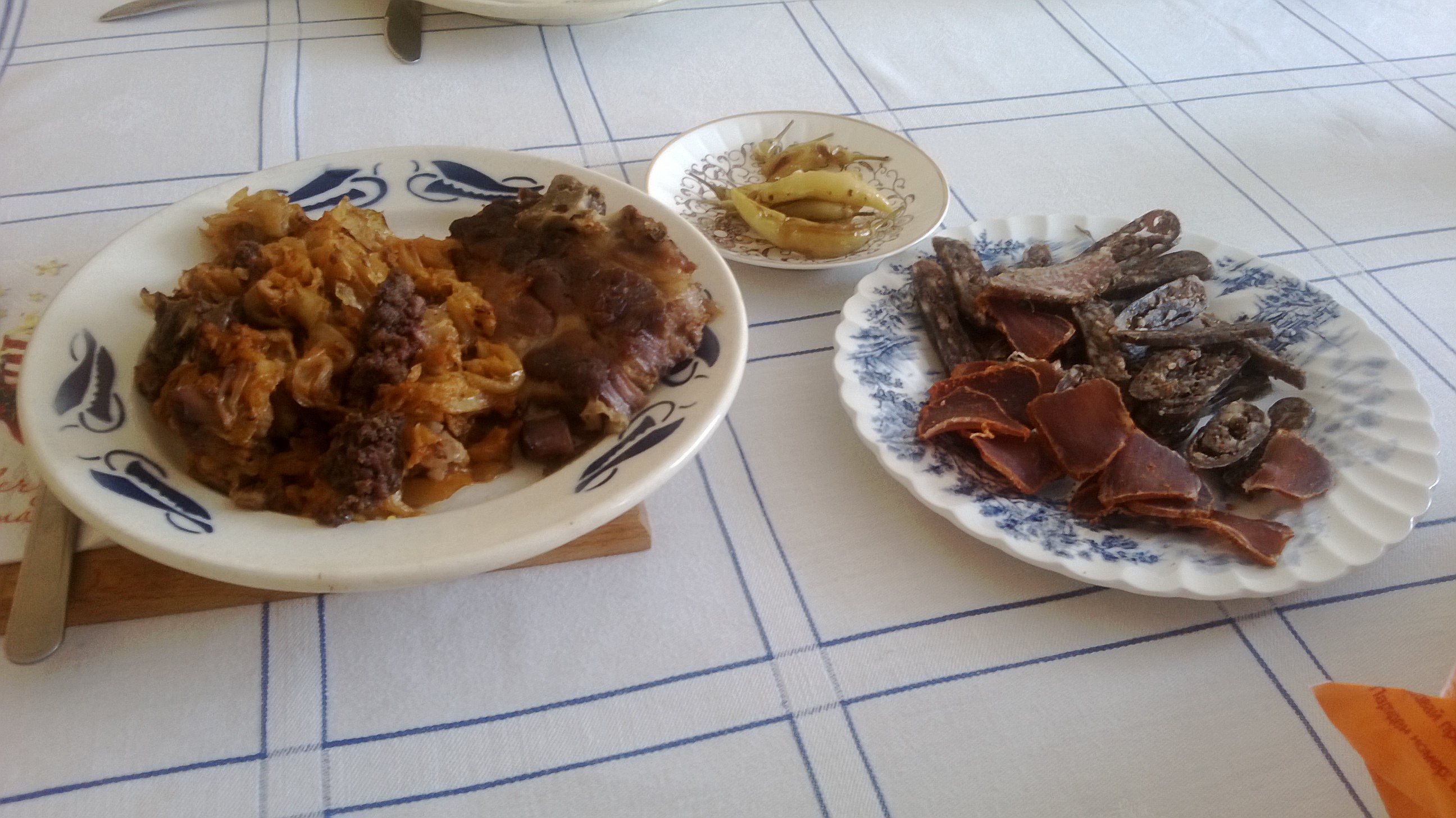 Агнешка чорбичка застроена с краве масло и червен пипер зеле с домашна наденичка гъби припанки и леща ....няма време за сервиране