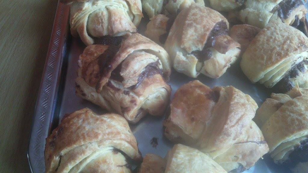 Супа и баница със спанак и за кафенцето шоколадови кроасани с не много добър външен вид ,но с прекрасен вкус.
