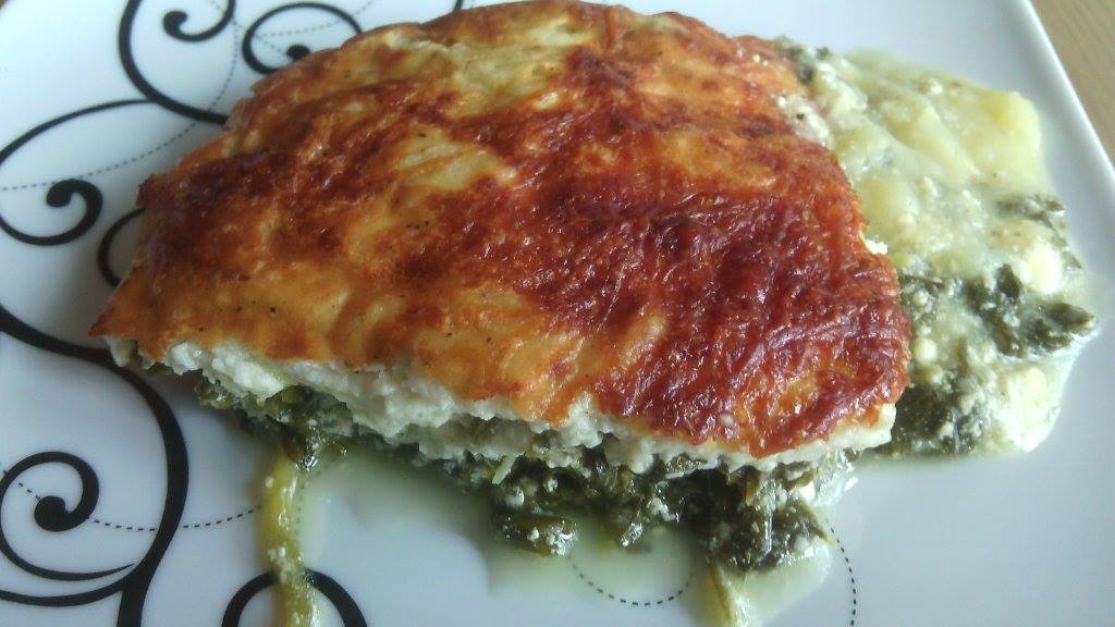 Имах останало от вчера картофено пюре,2 плика по 300гр.спанак,1 връзка пресен лук 2/3 кофичка кисело мляко,около150 гр. натрошено сирене и малко по-малко извара и голямо желание да разчистя хладилника.