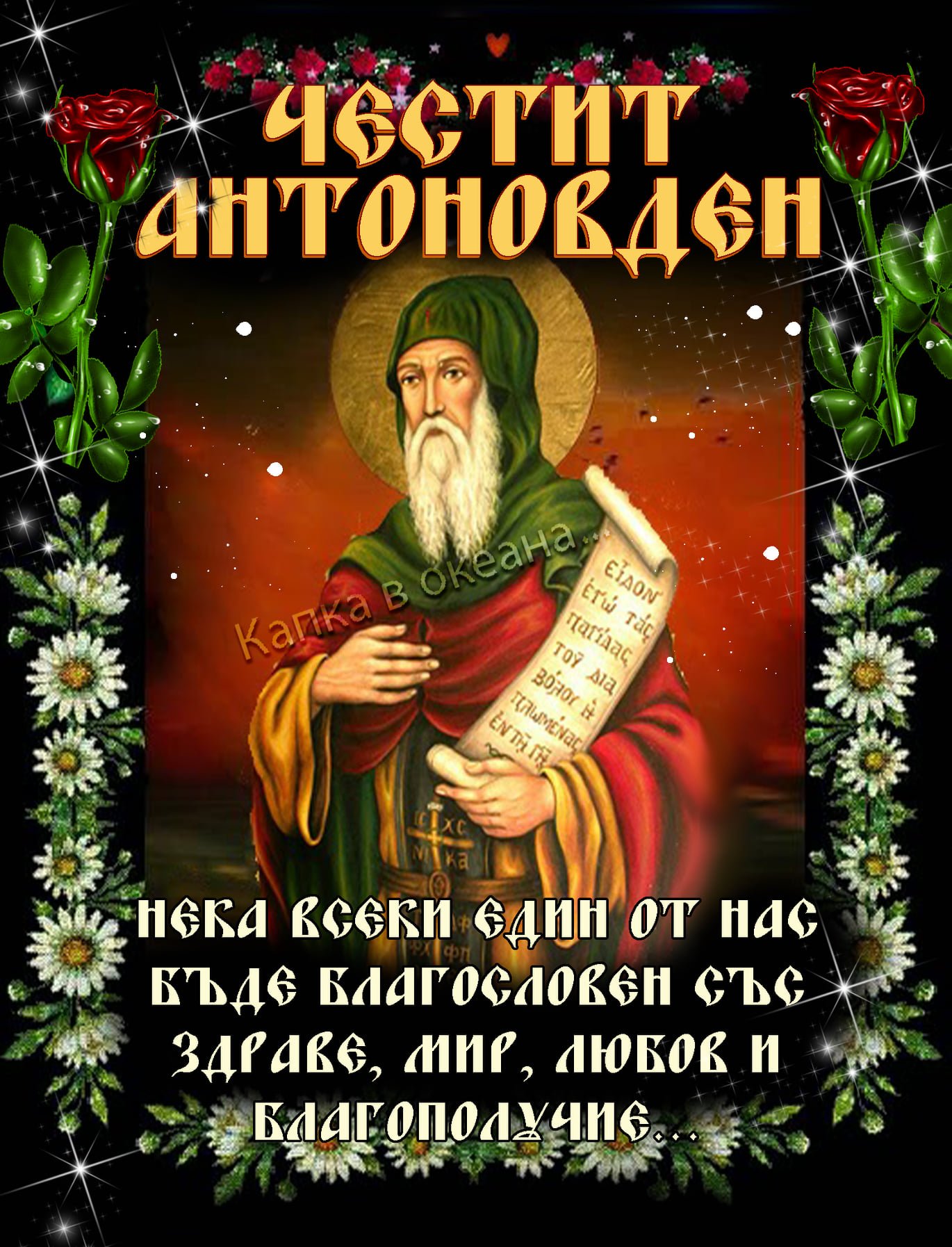 :) :thumup: :giflo2:Днес, 17 януари празнуваме Антоновден, който е църковен празник в чест на Антон Велики. В народните представи и вярвания, Св. Антон и Св. Атанас са владетели и господари на чумата и други епидемични болести. Този ден е свързан с предпазването от различни заболявания, но най-вече от чумата. Празникът е познат на българите още като Лелинден или Чумин ден.