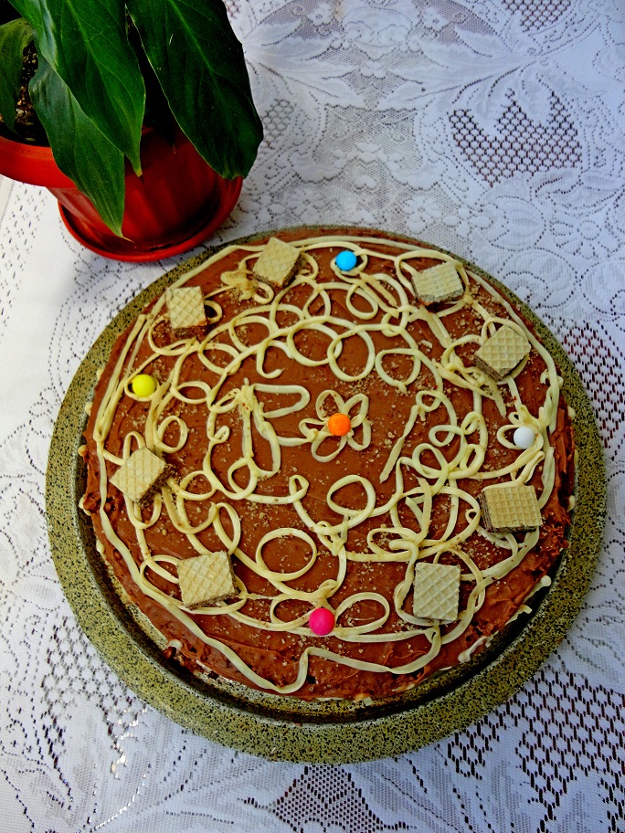 Малко късничко се включвам ,но за теб Влади винаги . Черпя те с торта с крем Фереро Роше .Малко украсата ми не е на ниво ,но какво да се прави - толкова мога . Важното е да ни е вкусно )))