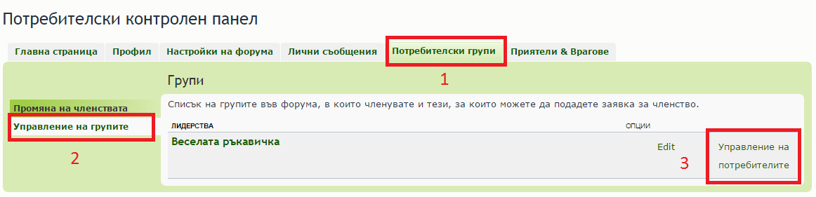 списък с потребителите в група "Веселата ръкавичка" може да се види тук