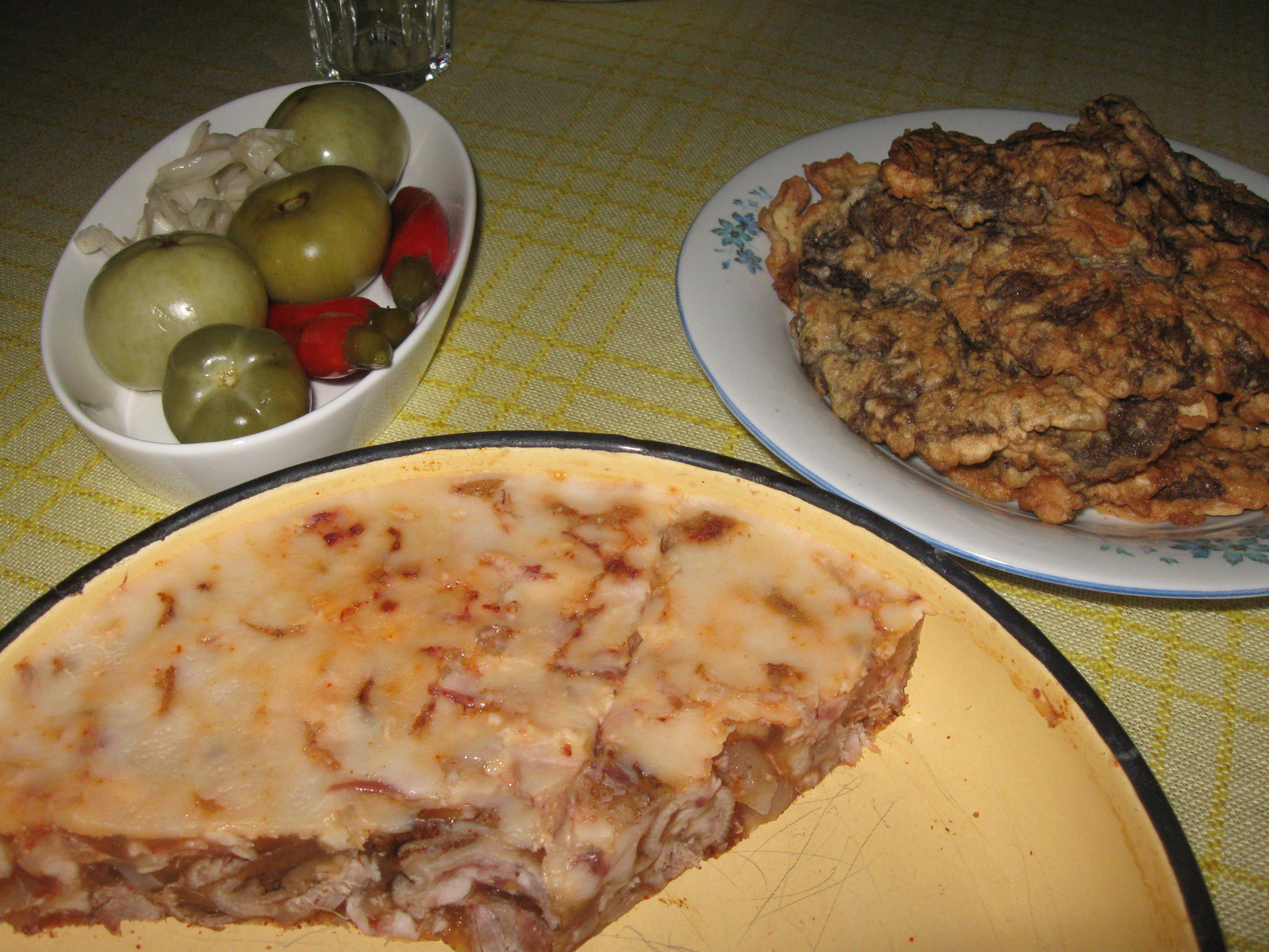 А нещо по различно за мен - спагети с пилешко и няколко вида сирена -получи се приятно.....мусака и пилешко филе - домашно.....намалява ще повторя рецептата сполучливо е......