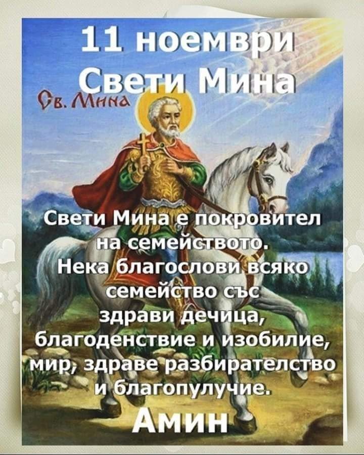 :heart: :rainbow: :heart:Св. Мина закриля жените, затова на този ден те се молят пред иконата на светеца за здраве на децата си, за радост и благополучие на дома.. :giflo2: :giflo2: :giflo2: