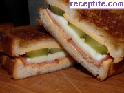 снимки към рецепта Сандвич с кисела краставичка, бекон и чедър