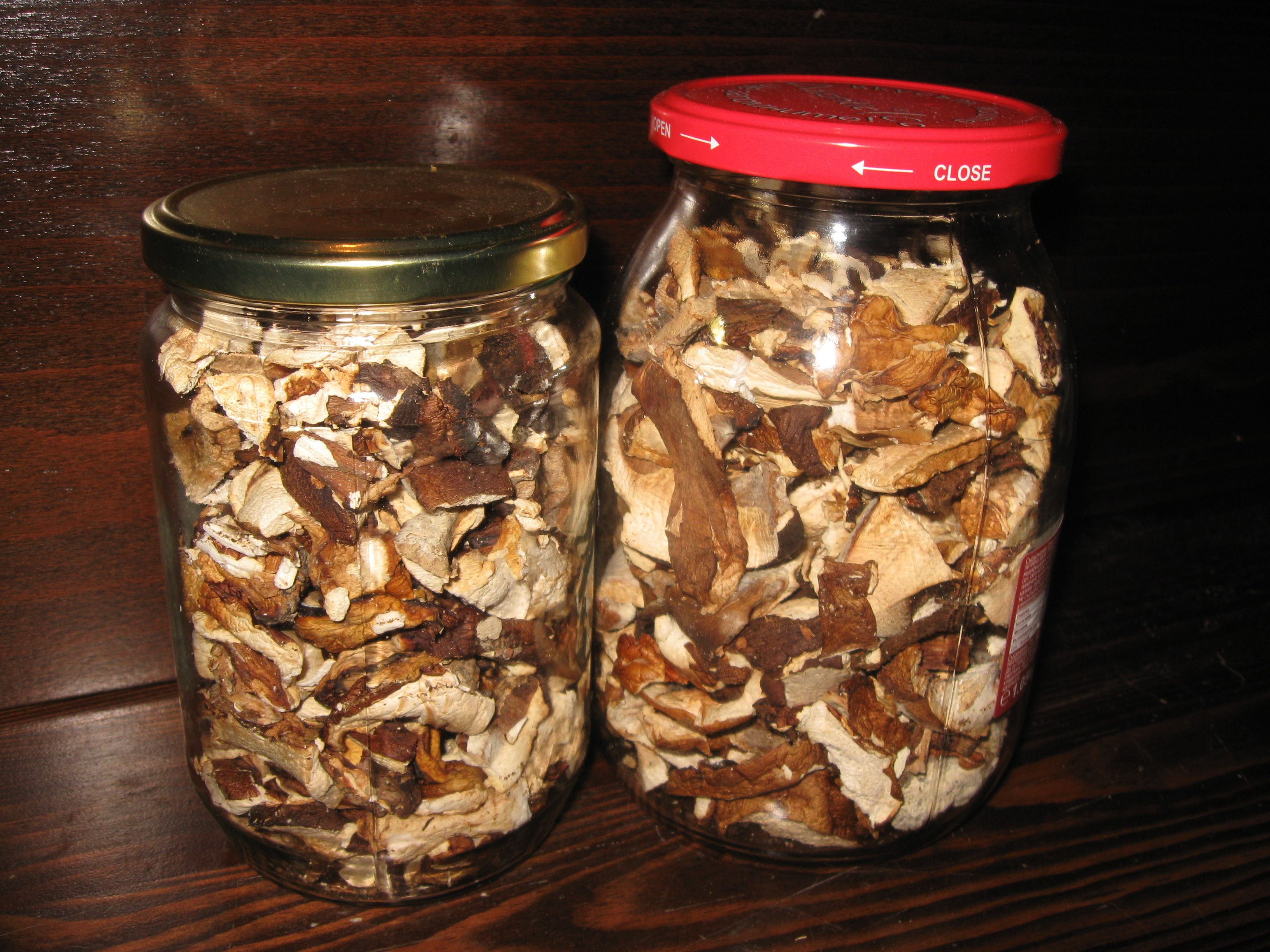 От сухото мезенце остана скромно -но ще добавим още......сухите гъби манатарки е нещо незаменимо а туршииката е нависоко от снимката е показно