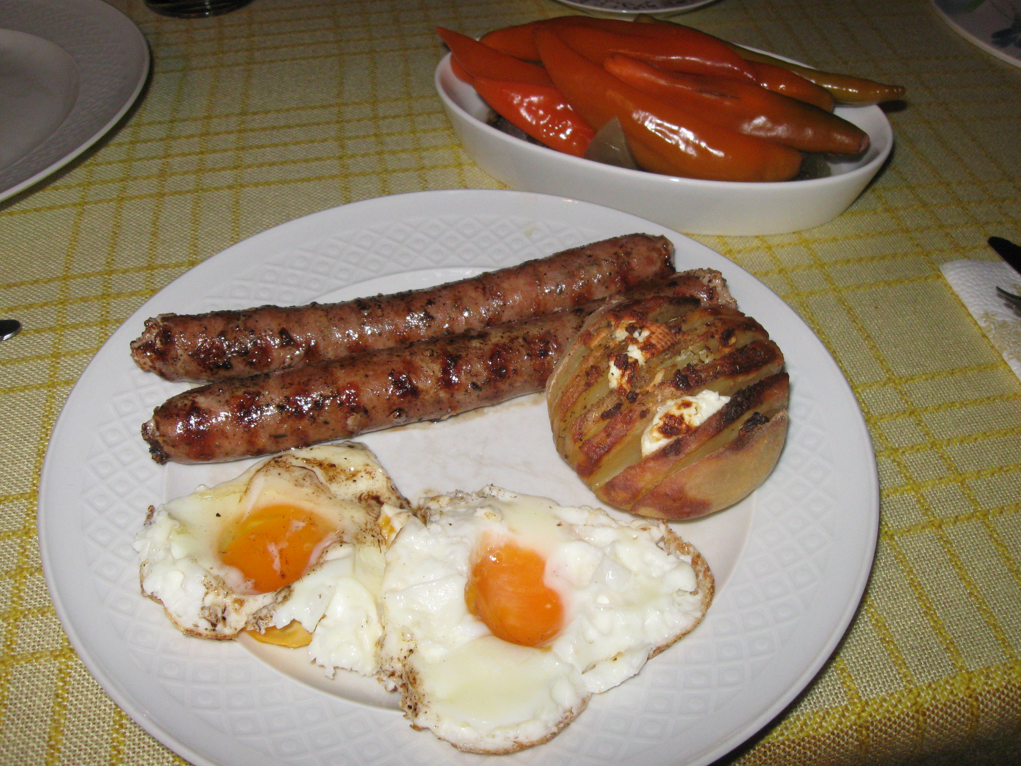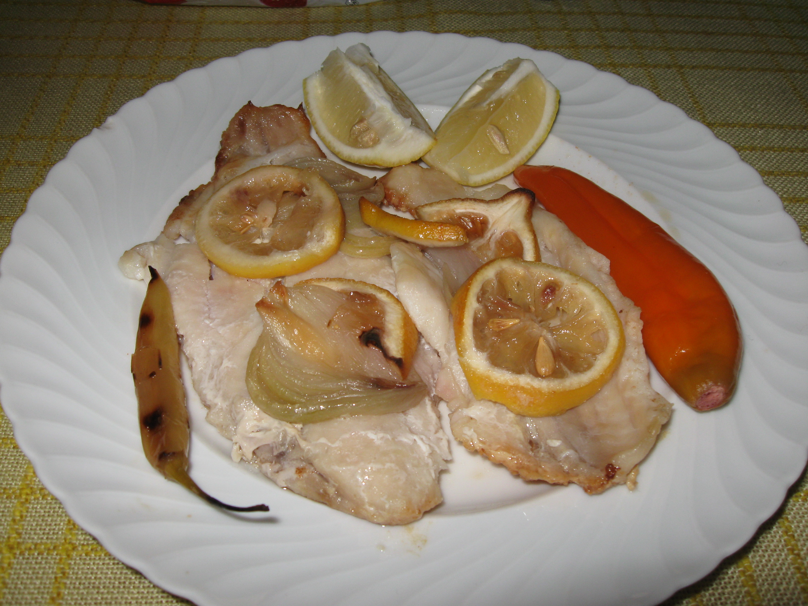 Наденичка и яйца на скара пилешки хапки и бяла риба с лук и лимон.... :thumbsup: