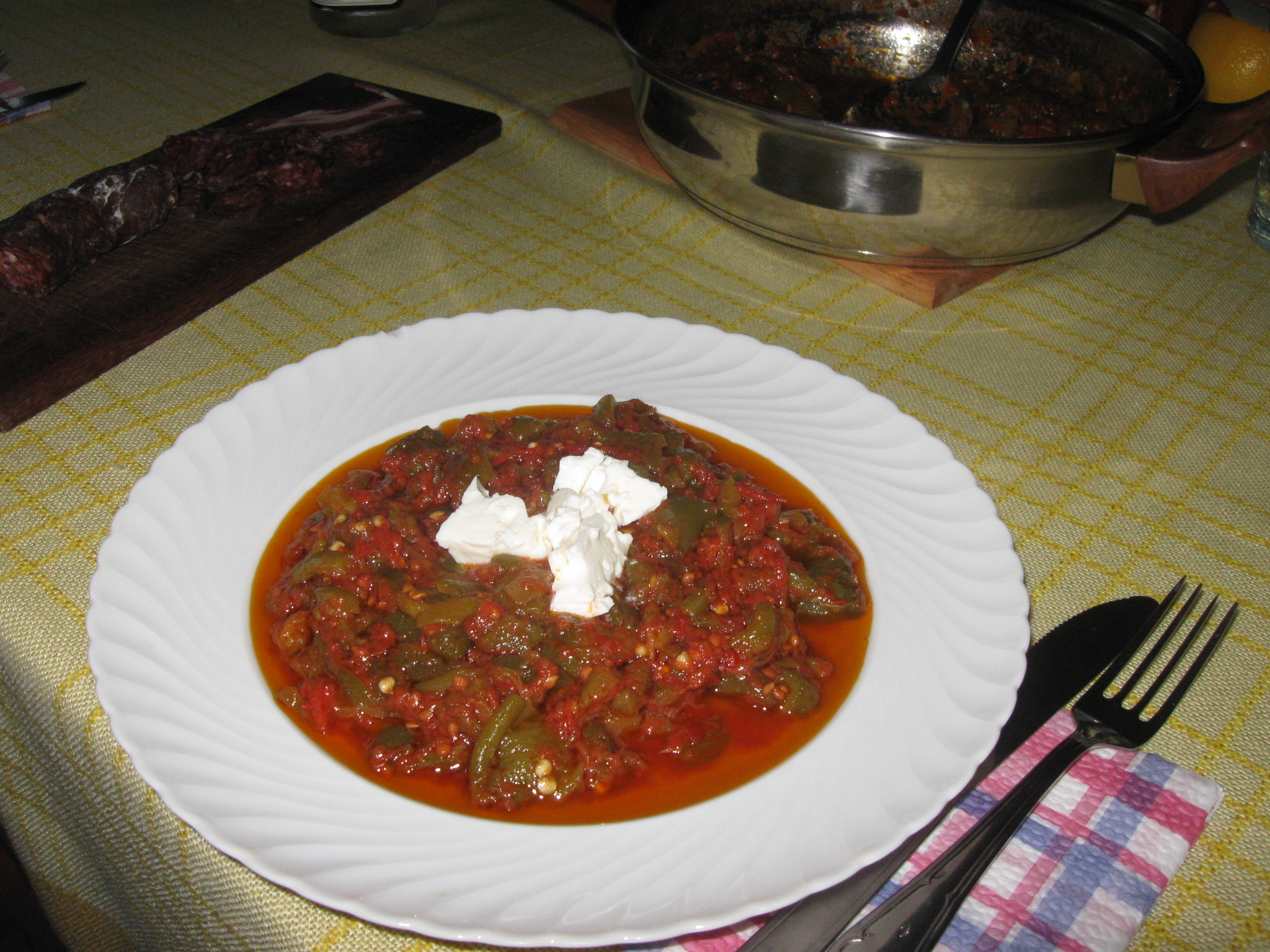 По малко ...печена сланинка ....чушки с домати и пълнен патладжан...