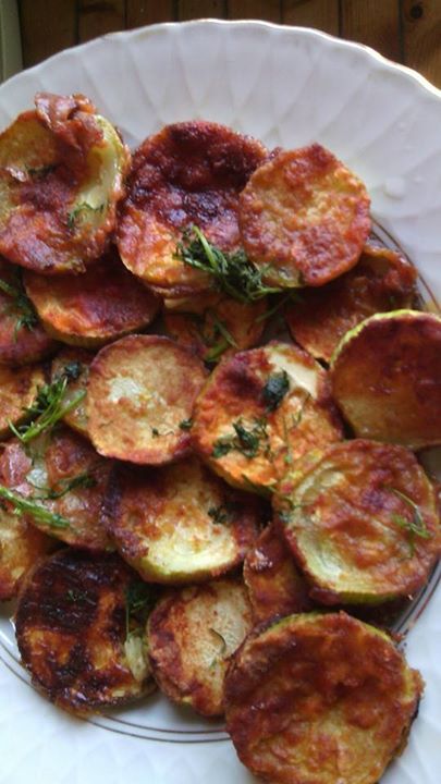 За вечеря тиквички на фурна с чесън и мента,мерлуза гратината,десерта е от сладкарницата неаполетанска баба(подобно на реване)