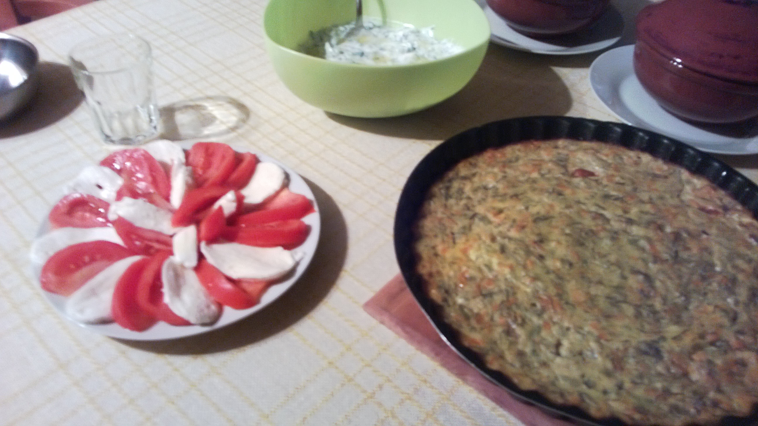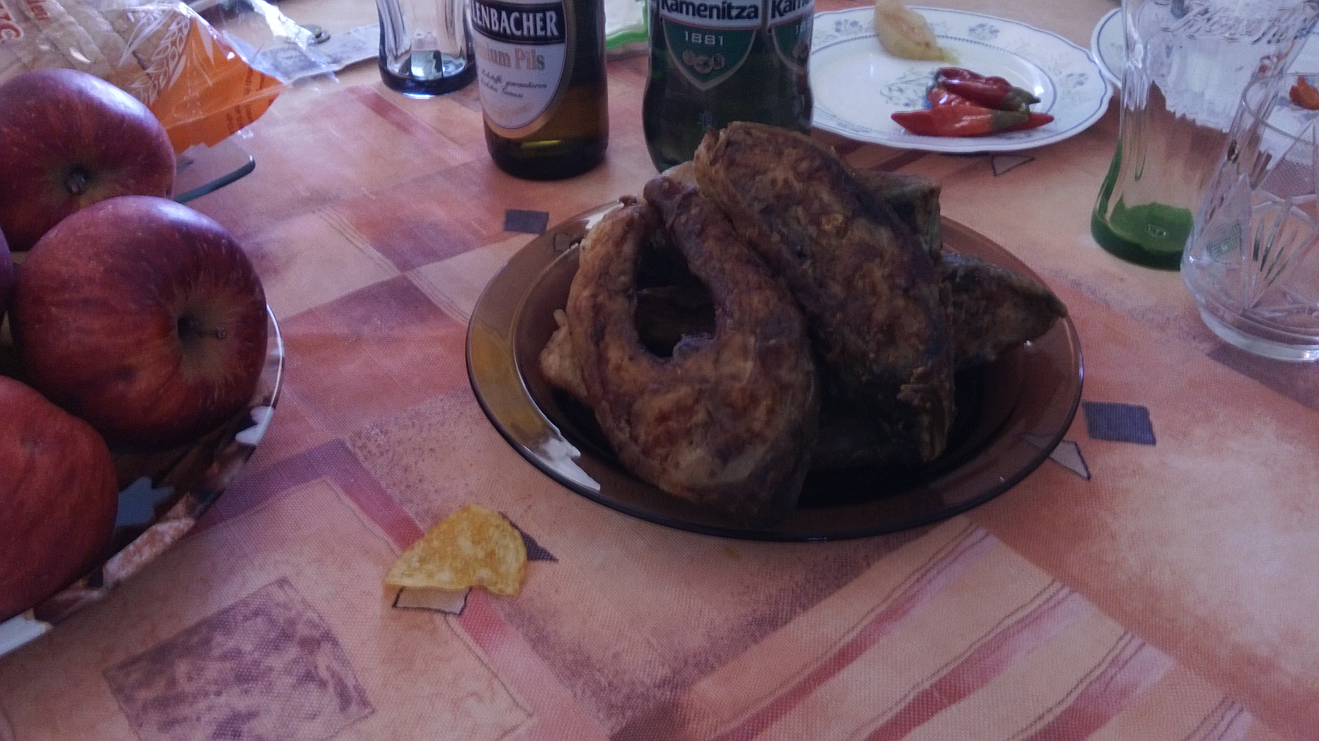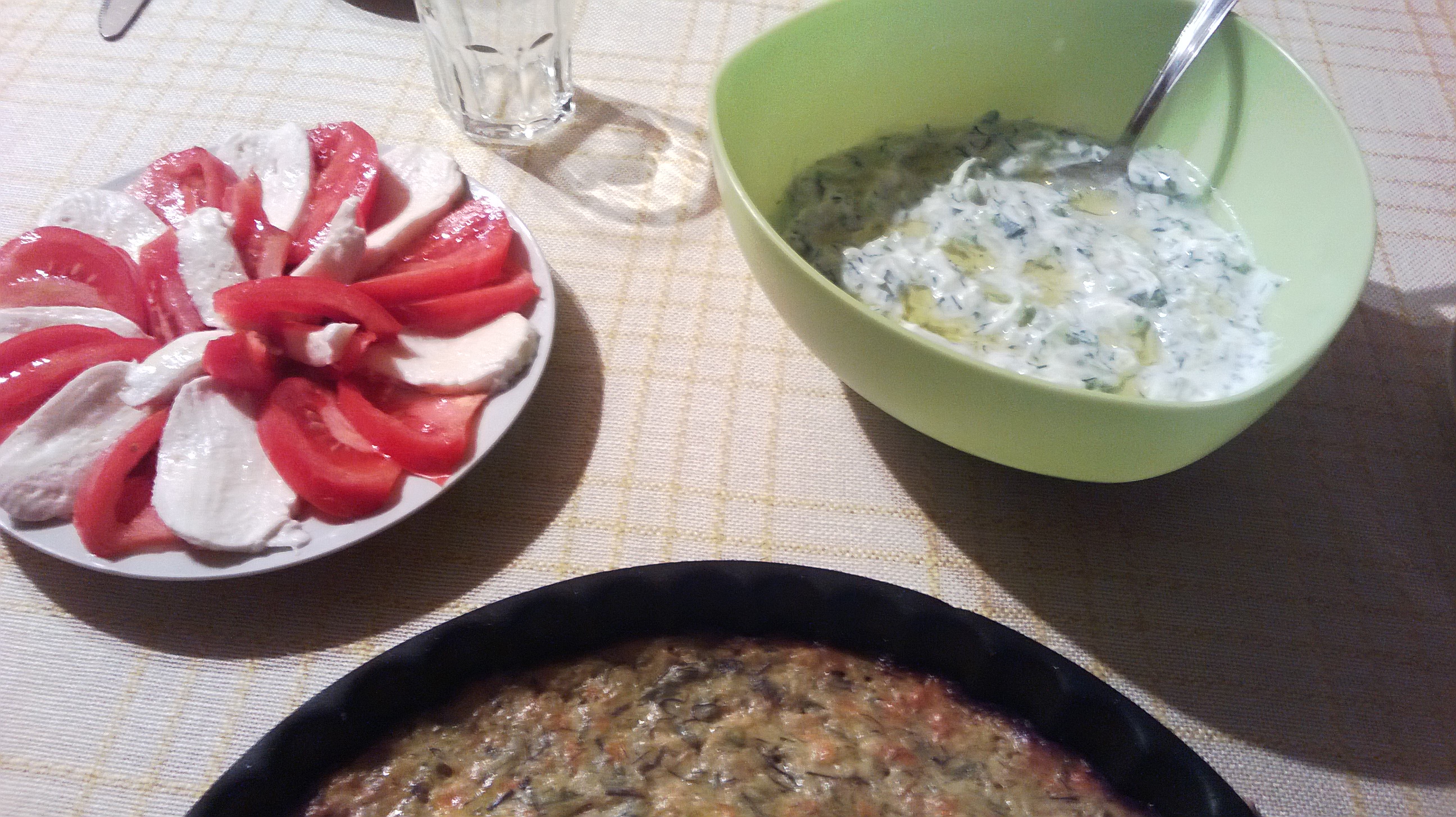 Салати любимия печен омлет - този път с тиквички гювечета със сирене и кашкавал и пържен шаран - всичко леко преди празниците...